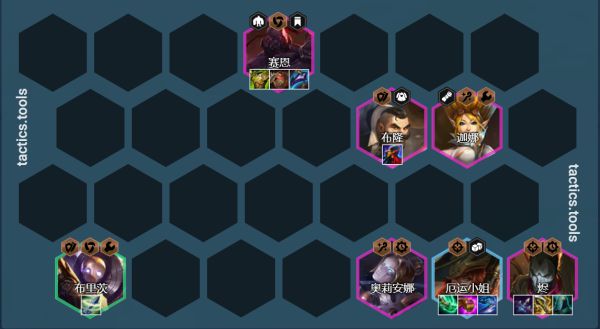 6人口补充一个蕾欧娜凑出2保镖羁绊补充前排的坦度。如果没有蕾欧娜,也可以用波比或者诺手来代替,但是相对来说坦度没有这么高。当然也可以上宝石凑出1社会名流,如果社会名流的位置在最后一排,我们后期可以拉9人口补充宝石或者萨勒芬妮。