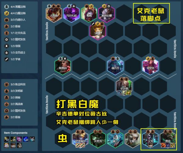 2.假如对位很好,艾克老鼠都跳到空地上,那自己前排炼金死掉以后,仇恨第一时间转移是在艾克身上,等全部人死了才会转移到老鼠身上,这样站可以保证老鼠的输出空间最大化,老鼠还是很脆的,哪怕三星有三炼金buff也是不强求吃艾克buff的,因为吃到艾克buff,就意味着老鼠在人群中这其实就很危险了