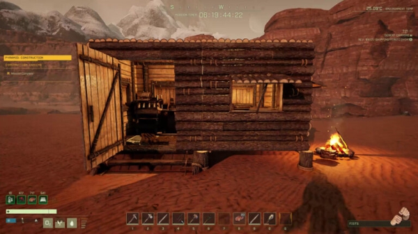 带上篝火、床和一叠皮革会使建造之路更加容易。此外还需要建造制作台,任务指定区域附近几乎没有树和纤维,所以进入沙漠前多砍一点树。