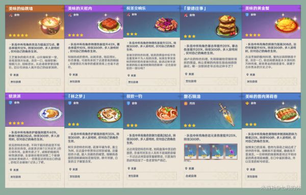 根据自己的队伍吃buff,这里只选了其中有代表性的食物,有很多相同增益的食物,选自己有的buff增益最高的即可。