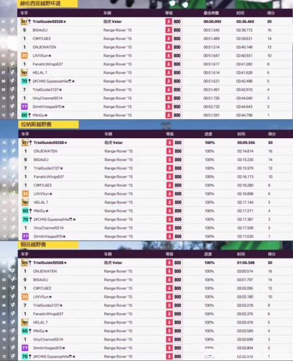 注解:前几个季节赛冷饭热炒,冲刺赛基本第1,2个弯道就可以冲到第一,环道赛不太友好,后几个弯从外切内可以无视红线。另外低分车刹车捉急,不过拉力赛谁走线啊,但凡判断能过飘就飘了。