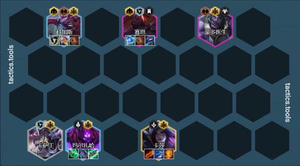 阵容组成:大虫子、蒙多、卡莎、卡萨丁、塞恩、马尔扎哈